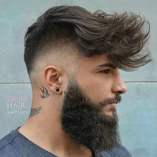 Es difícil no amar los diferentes ángulos de este corte y cómo gana longitud a medida que avanza hacia la frente. Con barba, ofrece mucho encanto y clase.