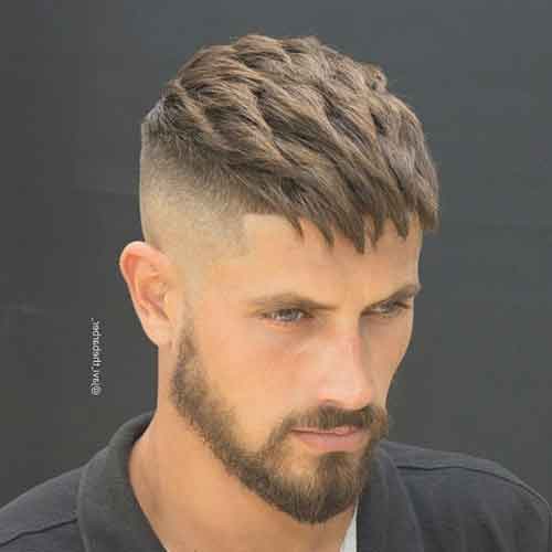 Este corte es diferente debido al estilo único de separar el cabello y el volumen en la parte superior. Para aquellos que quieren un poco de cabello a peinar, esta es una opción muy atractiva para el hombre inteligente de la moda.